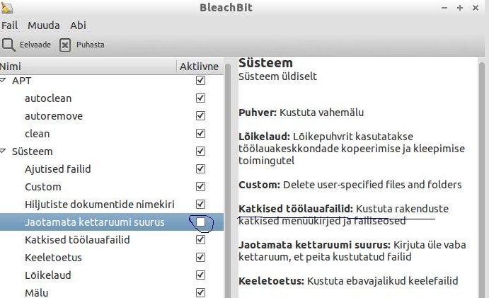 Tegelikult tavarežiimis saab puhastada kasutaja bashi logisi, veebilehitsejat, pidginit .jt sarnaseid. flashi playerit, skype, prügikasti ja