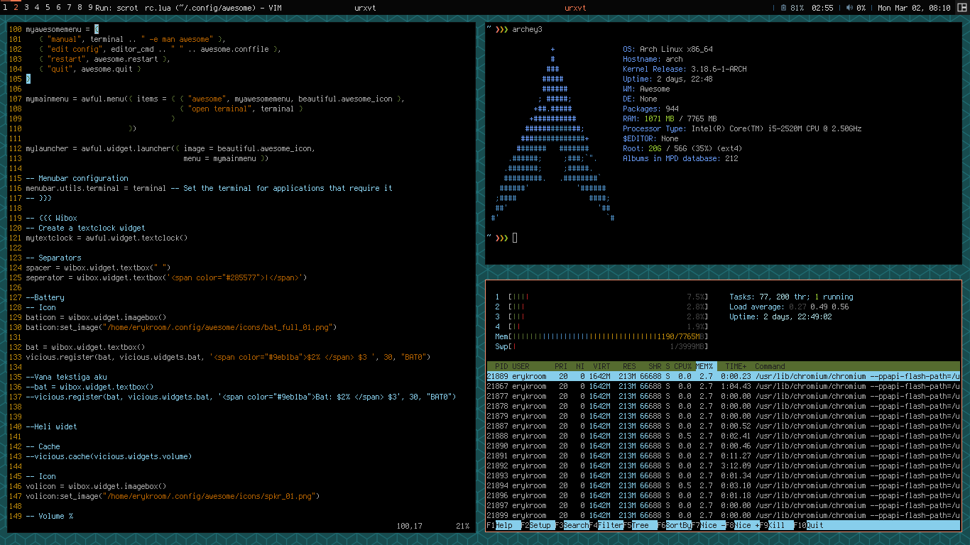Sai üle aastate taas conky ettevõetud ja "kohvi" kõrvale näperdatud ja googel-moogeldatud. Pole just parim tulemus ja vajab veel siit sealt näpimist aga enam pole mahti ja lükkub tuleviku. Põhiline on olemas mis vaja