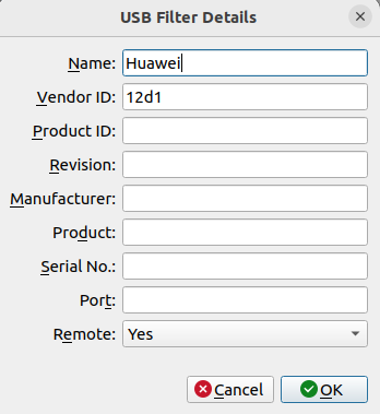 dmesg | grep -i 12d1: | Kood: | | [ 2373.463975] usb 1-1: New USB device found, idVendor=12d1, idProduct=1505, bcdDevice= 0.00
