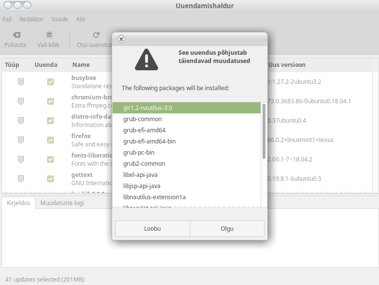 | Klõpsad #Olgu# ja peaks need pakid automaatselt installima või uuendama. Valida pole sealt midagi, sest mingi uuenduse jaoks on need pakid kõik vajalikud. |