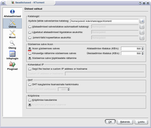 Kas ma saan määrata ka, mida ma tegumireale saan panna? Varem läks KTorrent ise sinna aga nüüd ei lähe.