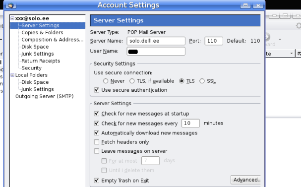 | kõik seaded on nagu kmailiski mis töötab aga ikka annab selle vea, saatmine töötab aga alla laadimises on probleem, mõistus otsas, proovisin ka muid seadeid