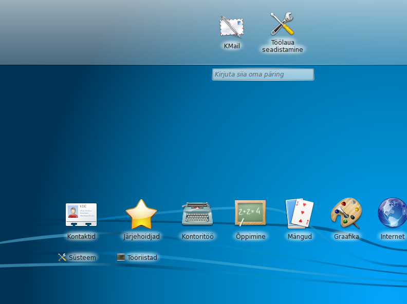 | Vajutasin kuhugi ja sain tulemuseks sellise töölaua, nagu pildil(ikoonid keskel ja otsinguribaga)aga tagasi ei oska enam minna.