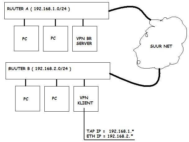| itvendpowered kirjutas: | | Mina saan nii aru et LAN A bridgen ära sisevõrguga ( br0 = eth0 + tap0 ) ja teises LAN B ka nii ? |